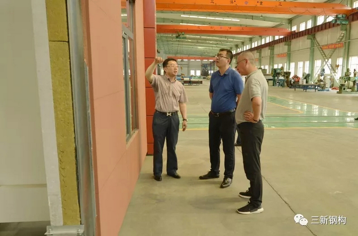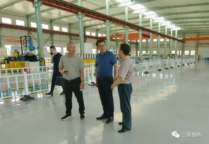 省廳領導在公司總經理洪長禧的陪同下參觀了公司裝配式建筑及幕墻生產基地和生產線,并對三新裝配式建筑實體模型和部品進行了詳細的了解。曹廳長、王處長對三新裝配式鋼結構建筑體系及先進的生產裝備給予了高度的評價,認為產品設計理念、制作工藝、安裝水平達到國內領先。