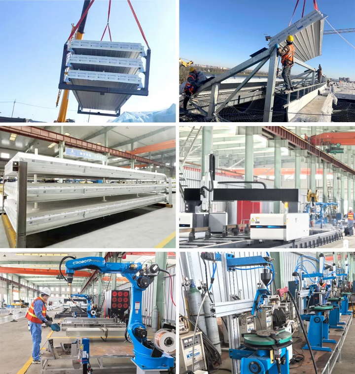 2025 年 8 月 15 日主體結構穩定后,786 塊屋面單元、140 塊天溝單元需在 78 天雨季內完工。三新的智能車間里,意大利薩瓦尼尼沖剪中心與瑞士激光切割機晝夜運轉,將板塊拆解為上萬個零件精準預制;施工現場,全站儀密集打點校準三維坐標,塔吊將 9m×3.5m 的超寬板塊穩穩吊裝,專職安全員拉起的警戒線守護著 38.4 米高空的 “零事故” 底線。更令人驚嘆的是,針對非塔吊覆蓋區的 11 塊天溝,技術組創新采用分段吊裝工藝,讓 “不可能” 變成現實。