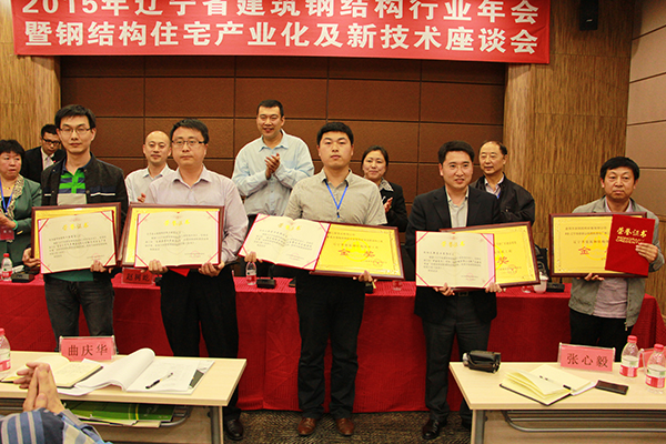 一個行業的發展離不開創新。會上,協會表彰了一大批在鋼結構領域認真鉆研、不斷進取的企業和個人,并為他們在鋼結構行業內做出的突出貢獻點贊。我公司的“金屬屋面橡膠堵頭”、“金屬屋面鋁合金封肋板”、“金屬屋面填塞塊”、“一種預打孔金屬屋面板及其屋面系統應用”、“一種金屬墻面板、龍骨及二者構成的保溫墻體”、“凈平開放式金屬幕墻系統”專利發明人洪長禧、李慶海等分獲“2014年建筑鋼結構科技創新專利發明人獎”;吳龍獲得“2014年度遼寧省建筑鋼結構行業協會優秀工作者”稱號;公司承建的“中國有色(沈陽)冶金機械新廠區建設項目”、“中鋁集團東北輕合金有限責任公司超大規模特種鋁合金板帶材項目及優化特種鋁合金板帶材產品結構配套項目”被評為“遼寧省建筑鋼結構優質工程”。